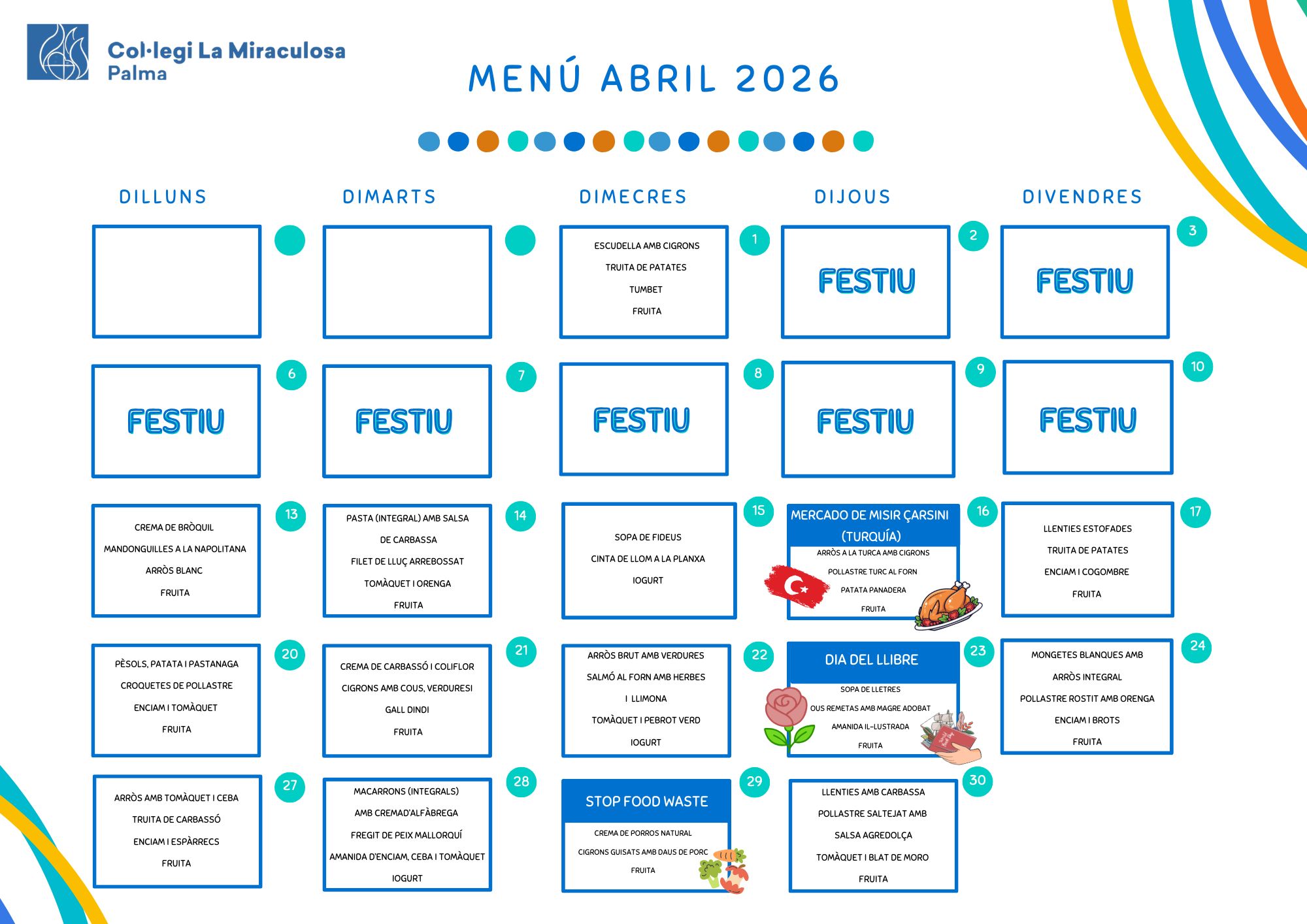 A continuació podreu  consultar i descarregar els  menús del mes: